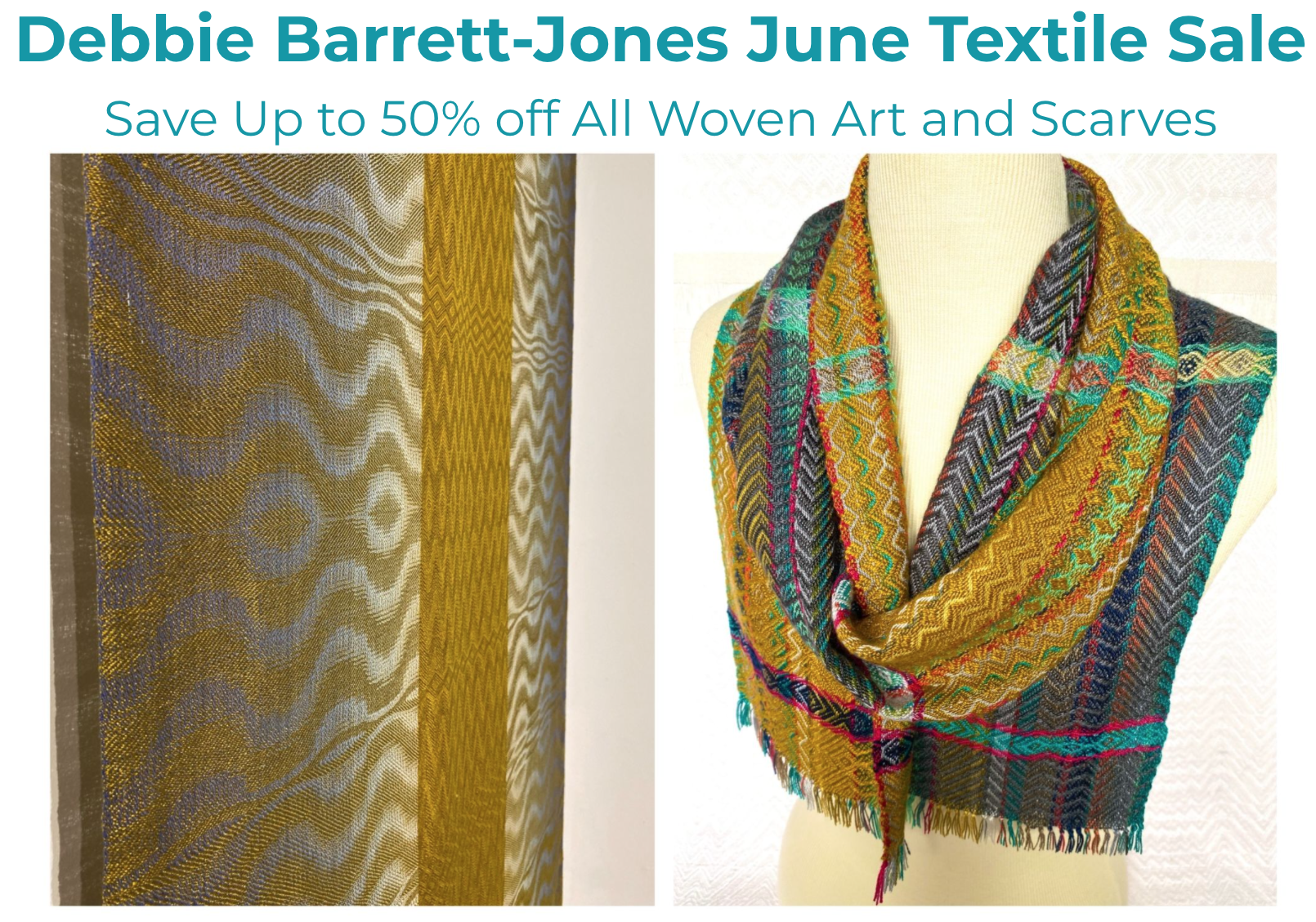 During the month of June Debbie Barrett-Jones Textiles will be fundraising for Healing with Weaving with proceeds from all woven scarves and artwork going towards Healing with Weaving Community Outreach Program. Shop and support by going online to www.debbiebarrettjones.com or in-person at the Leedy-Voulkos Art Center Shop in the Crossroads. Make sure to Stop by Friday, June 4, 2021 for First Friday Opening Day from 11am-8pm to be the first to choose from all the newest woven scarves made by Debbie Barrett-Jones during her first year at KU. For more information, join the FB Event.