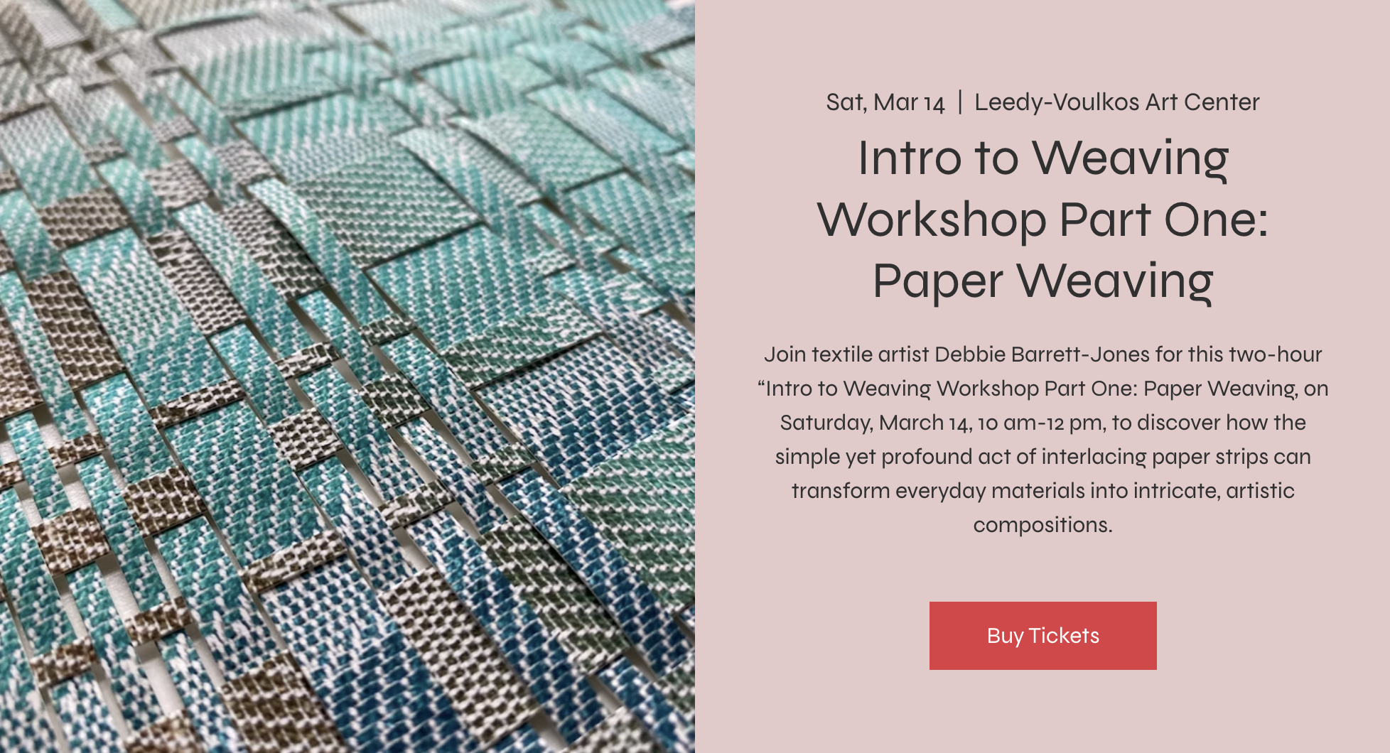 Join textile artist Debbie Barrett-Jones for a special two-part Intro to Weaving Workshop designed to introduce participants to the foundational techniques and therapeutic benefits of weaving. Participants may register for Part One, Part Two, or both sessions for a full day of immersive creative exploration. Each workshop stands alone while building on core weaving principles through different materials and approaches.